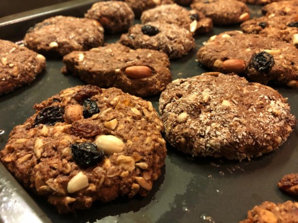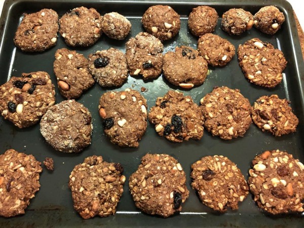 Bu tarifimde un yerine yulaf ezmesi kullanıyorum. Şeker yerine de pekmez ve kuru meyve karışımı. İşte çılgın kurabiye tarifim: